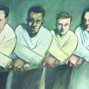 People in dressing gowns crossing their arms to join hands with each other; a public service message about the need to know about AIDS by the National Association of Social Workers. Colour lithograph. Source : Wellcome Collection. Licence: CC BY-NC 4.0.