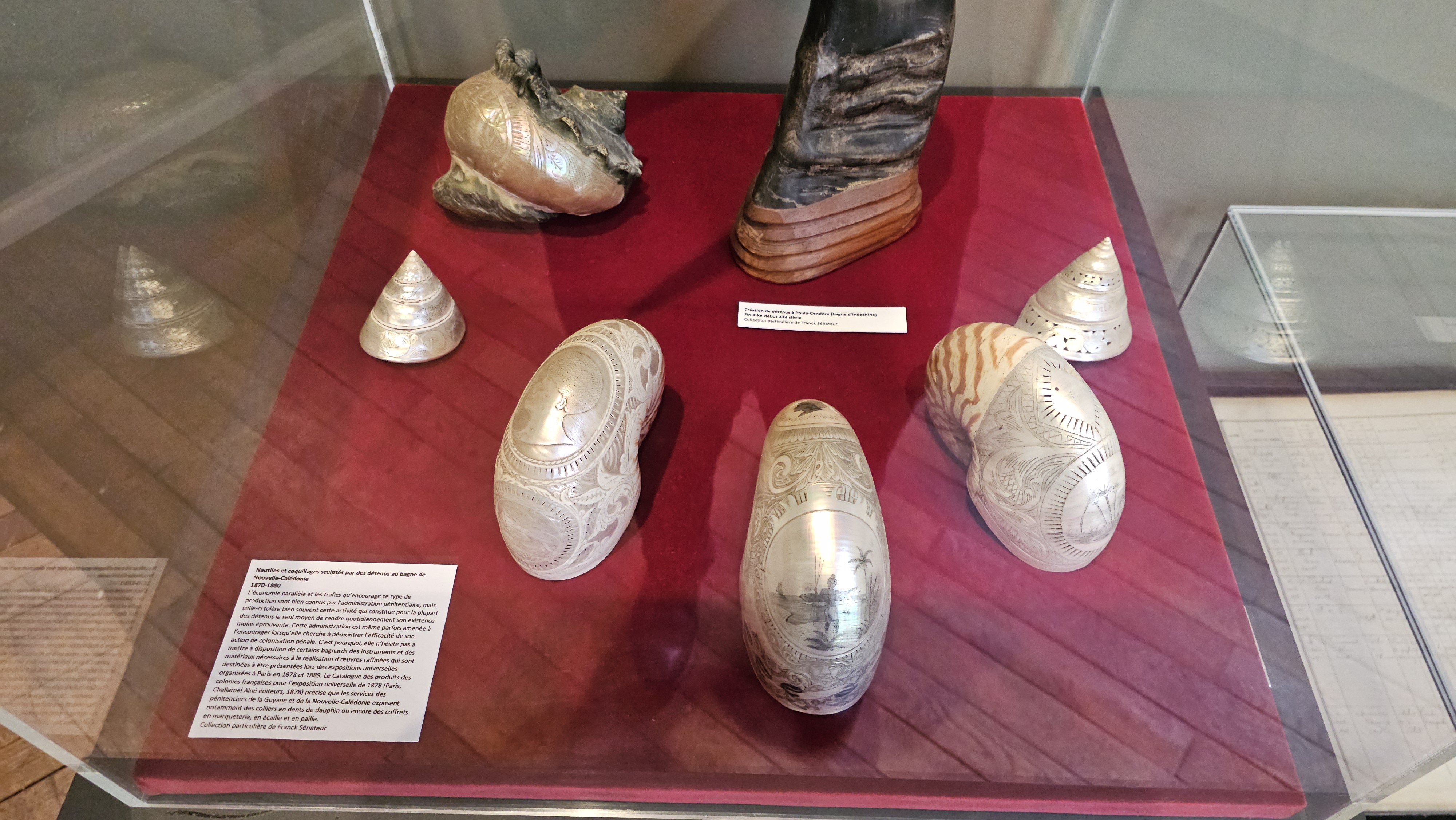 Nautiles gravés et coquillages sculptés © collection Franck Sénateur